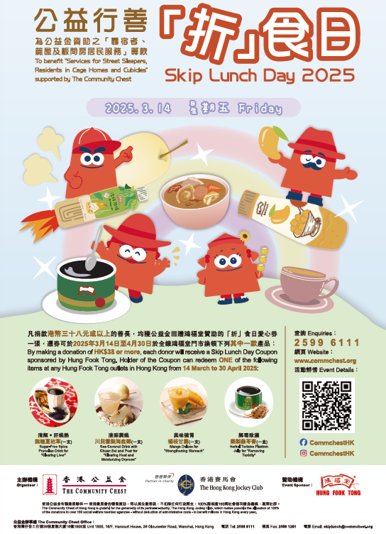After receiving confirmation from the Chest, please deposit your donation into the Chest’s account or make cheque payable to “The Community Chest of Hong Kong” and send it to the Chest office